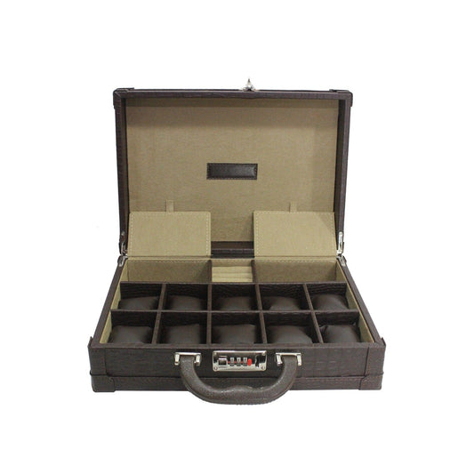 VIP Saat Ve Takı Çantası "Kroko Baskılı Kahve"