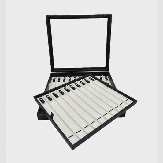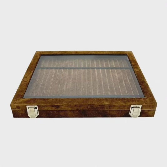 Lüks El Yapımı Cam Kapaklı Tesbih Kutusu | 21 Bölmeli Ahşap